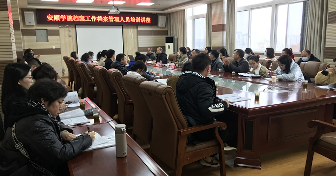 11月17日下午,安顺市档案馆馆长罗洪恩、副馆长袁芳、接收鉴定保护科科长汪忠一行3人莅临我校开展档案工作培训专题讲座。我校全体专兼职档案员、档案馆全体人员参与此次培训,安顺学院党委委员、副院长郭本华出席了此次讲座会并发表重要讲话。郭本华副院长指出,近年来,安顺市档案馆对我校档案工作顺利开展给予了大力支持,对相关业务多次亲临现场进行指导,为此表示衷心的感谢,对今日市馆相关领导能在百忙之中抽空到我校为档案工作人员进行有针对性的培训表示诚挚的谢意。档案工作是一项十分重要的工作,安顺学院走过了八十余载的风雨历程,档案是最好的历史见证者,学校全体专兼职档案员要以此为契机,高度重视档案工作,夯实理论素养,联系工作实际寻找一条能把档案工作做实做好的良好路径。