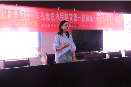 农业是立国之本,强国之基,为了号召全面大力发展农业,推动乡村振兴发展,更好的满足人民日益增长的美好生活需要。9月8日,由普定县农业农村局主办、贵州亿能职业技能培训学校有限公司承办的普定县2023年第一期高素质农民培育培训在该县黄桶街道陈旗村正式开班。我馆工作人员陈清婵老师为高素质农民培育培训进行授课。